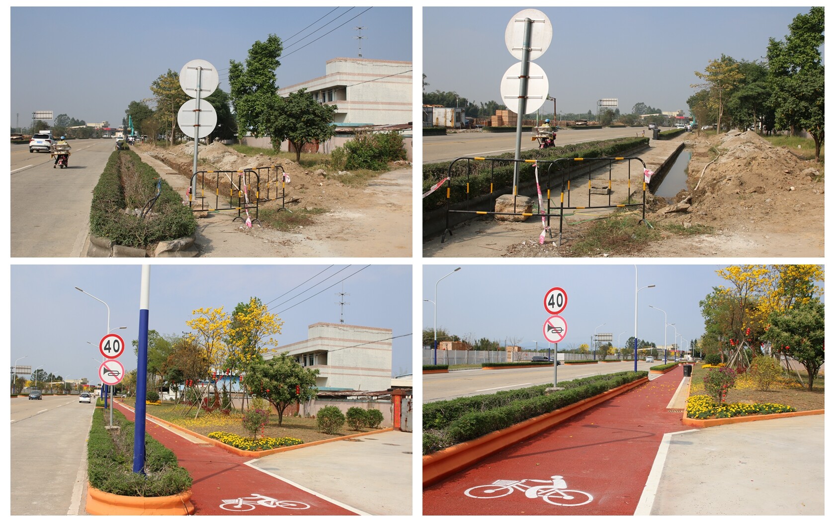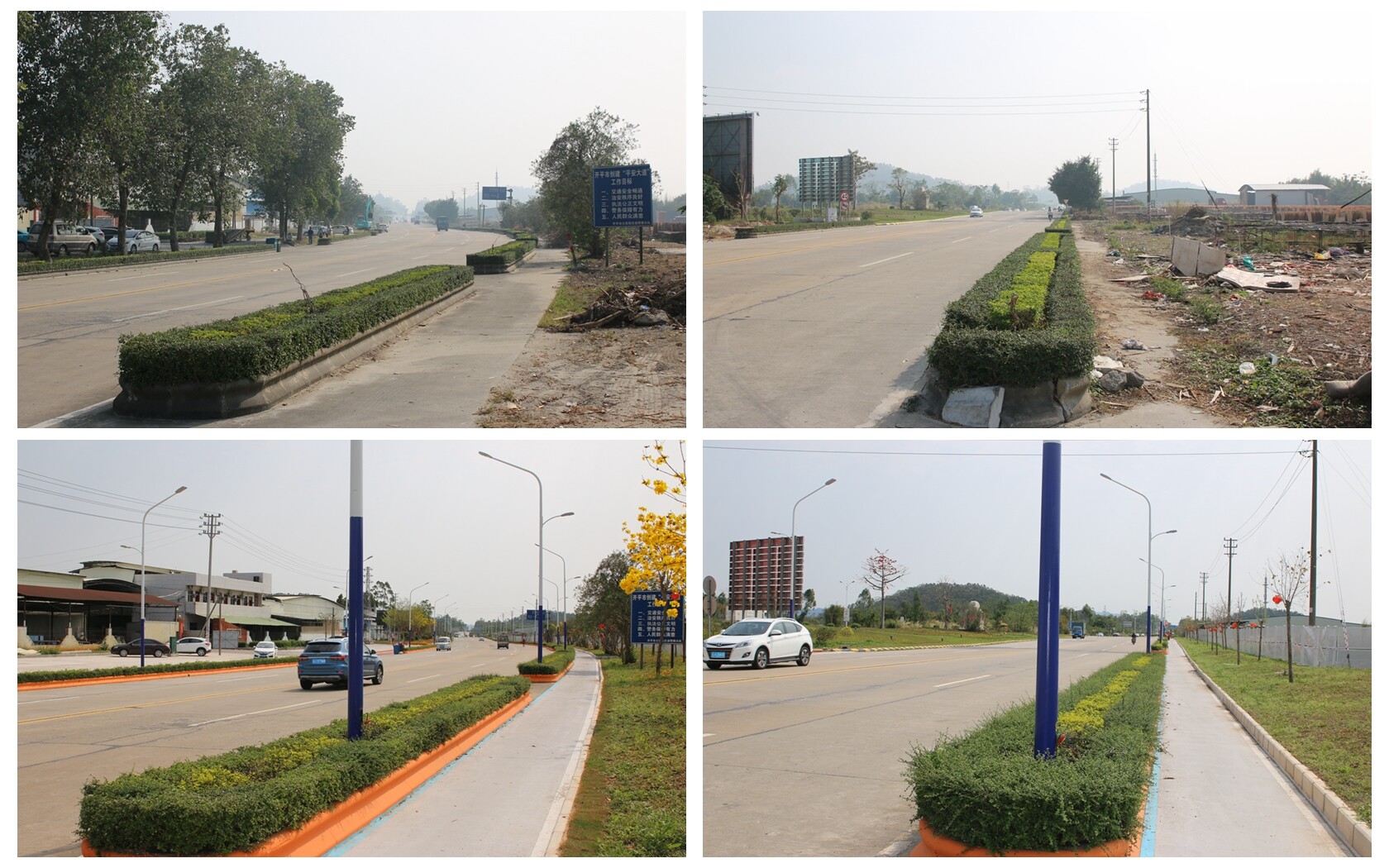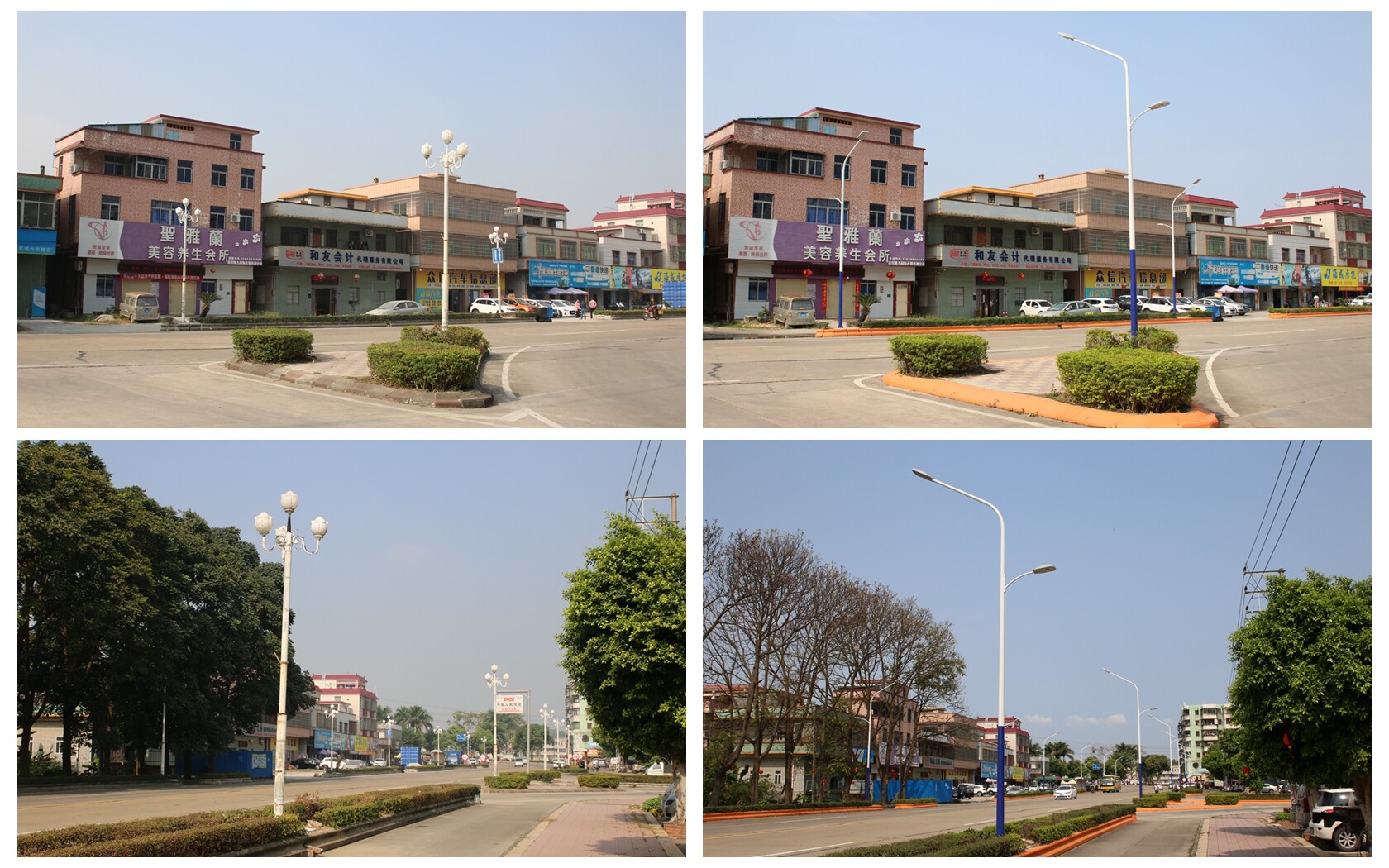 镇容镇貌焕然一新 迎宾大道是苍城镇的“门户”道路。然而,过去的迎宾大道两旁路灯运行时间较久,灯光暗沉,影响照明效果,行人道、停车位划分不明确,每逢雨天路边积水难退,汽车飞驰而过容易溅水打滑,周边企业木材随意堆放等等问题,一定程度影响着圩镇的整体形象。曾经的大东中路、大东一路,大东三路片区道路属于老旧街道,因临近市场,是群众生活和出行必经之路。但街道的路面久经风雨变得坑坑洼洼、行车困难,遇到下雨就容易积水、排水不畅,市场周边路段乱摆乱放等情况也比较常见,交通秩序较差,也给沿线居民群众的出行和生活造成诸多不便。 迎宾大道改造前后对照图 大东中路、大东一路和三路片区道路改造前后对比图 迎宾大道路灯更换前后对比图 如今,通过绿化提升、建设绿道驿站、对周边企业仓库围蔽管理、合理划分路边停车位、维修道路排水管道、更换太阳能路灯等对迎宾大道和大东片区路段进行“换新颜”,使得周边居民群众的居住环境进一步得到了改善,全面提升群众生活品质,改善圩镇形象,助力圩镇整体发展。 工会广场完善配套