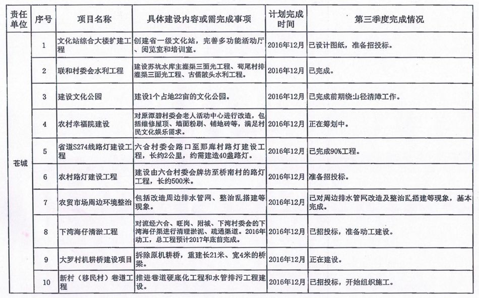 2016年苍城镇十项民生实事工作任务第三季度进展情况