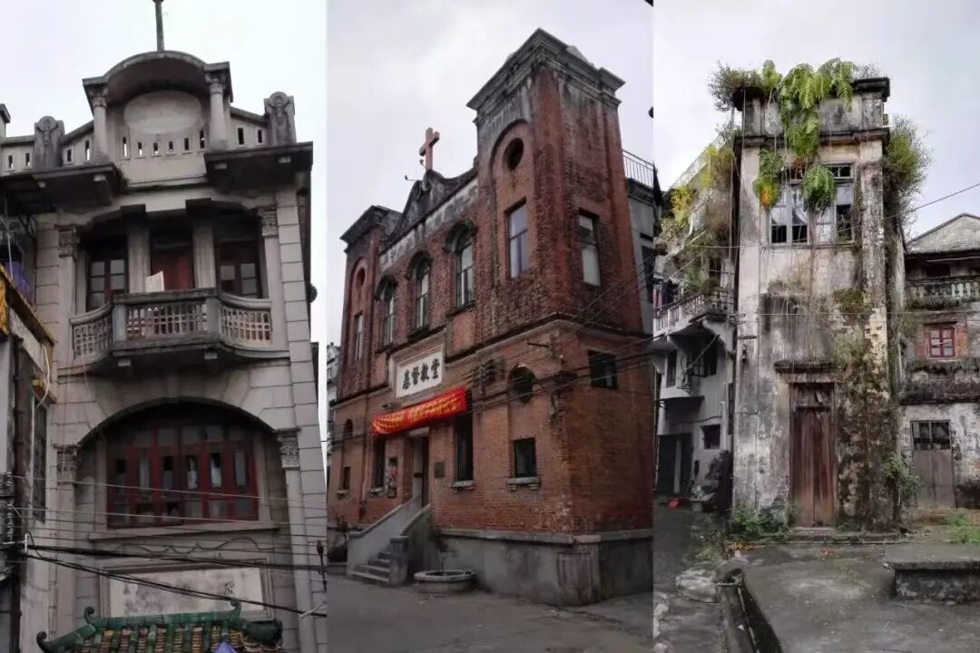 2014年赤坎项目启动,而在此之前这里绝大部分的老建筑早已是超龄服役的危楼——地基沉降、墙体开裂、钢筋锈蚀屋顶长出了树,瓦片一碰随风散