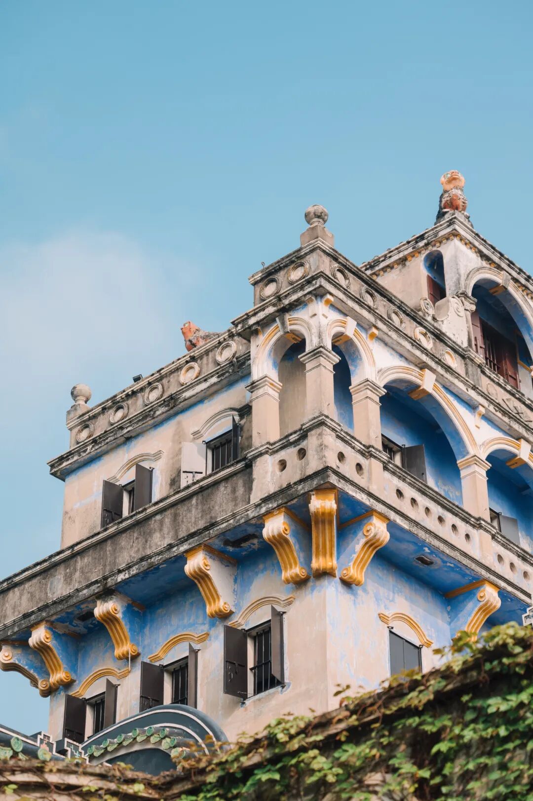 这些铁艺、水磨石、山花、罗马柱等等