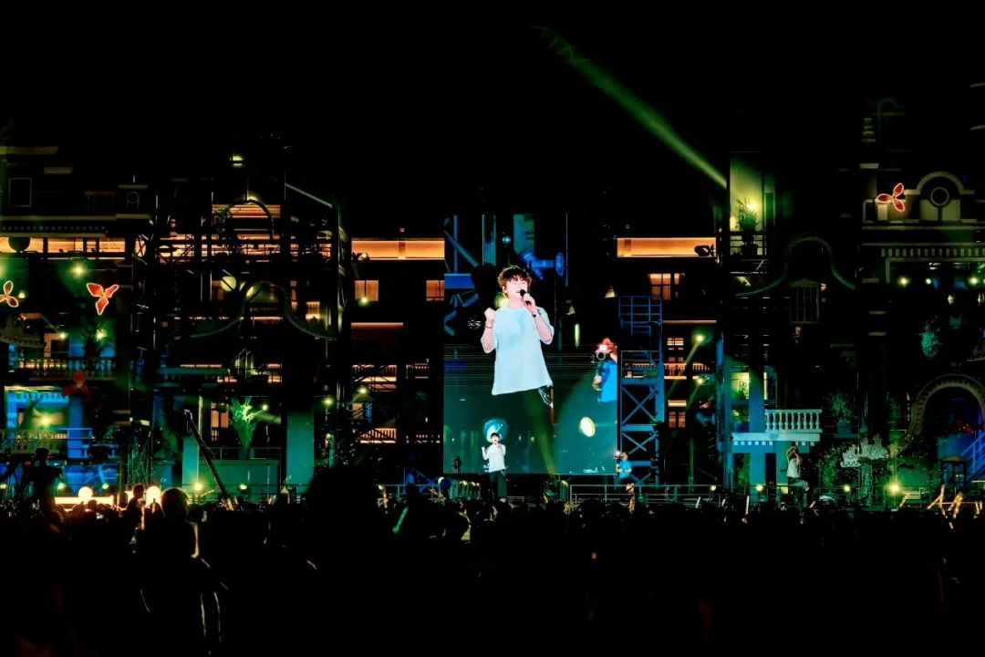台下观众挥舞着手中的荧光棒呐喊欢呼