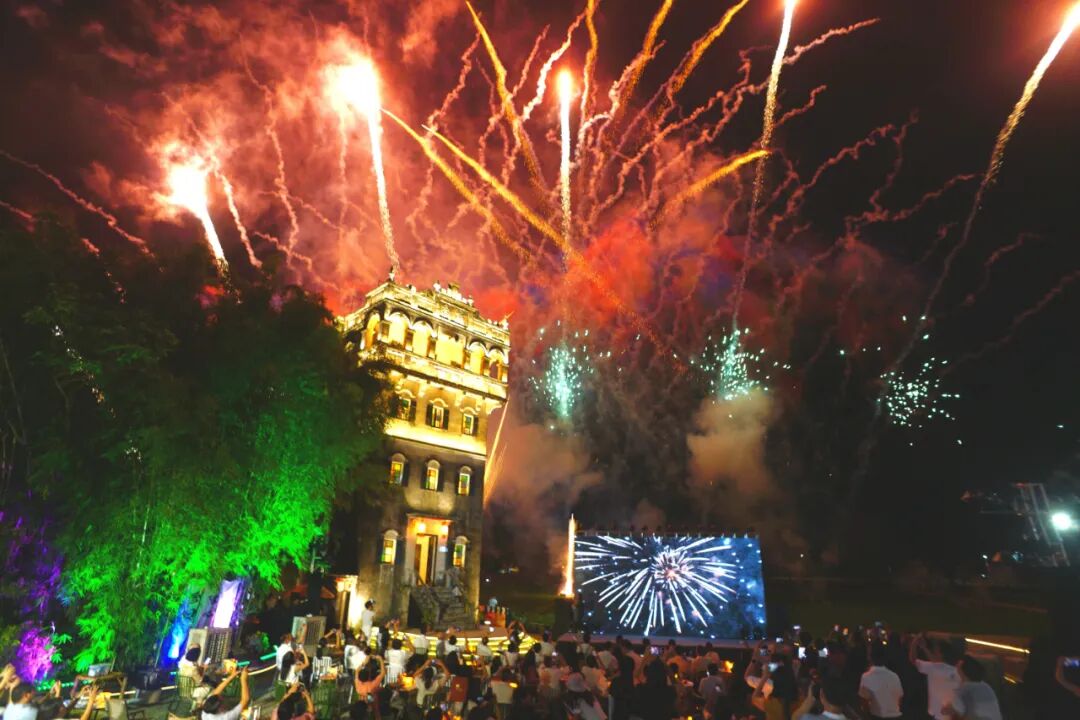 百年碉楼之下,绚烂烟花点亮星空;