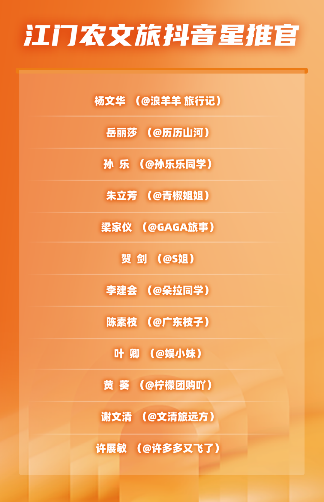 9月4日起至9月15日,市民可参与#看见百千万寻美新侨都#江门三点三精彩之旅话题互动,有机会获取福利权益,深度体验侨乡文旅魅力。活动现场还为12名“江门农文旅抖音星推官”颁发聘书。