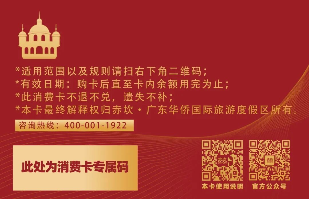 ③适用场景:赤坎景区自营业态及世遗碉楼景区,详见卡片背面使用说明。