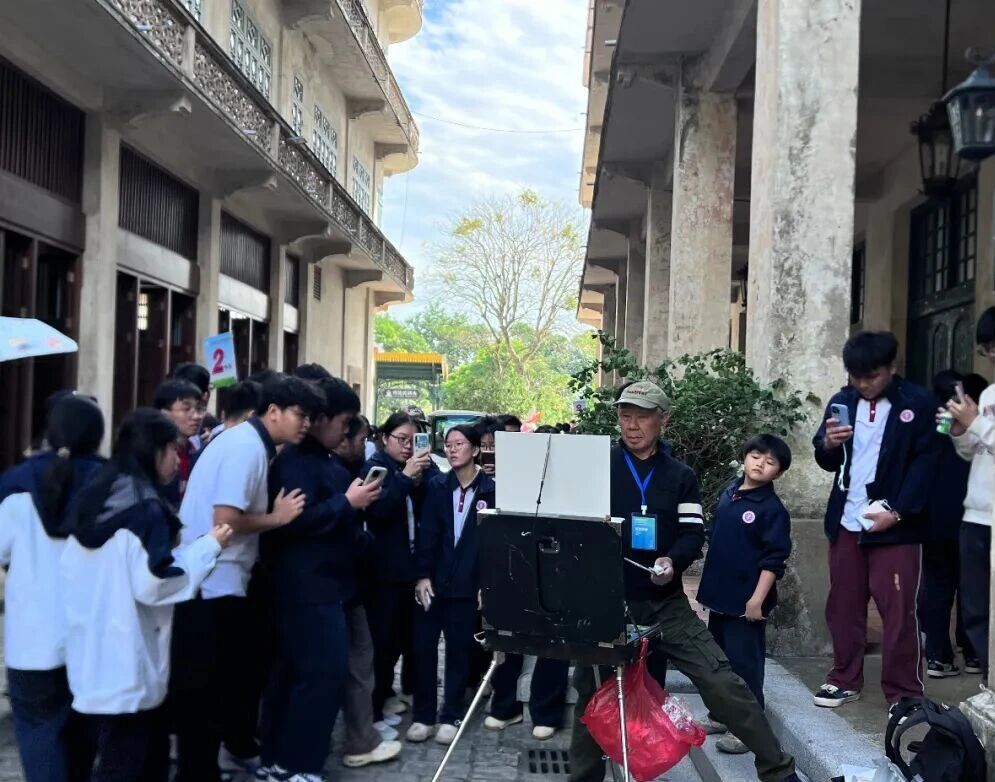 旅美开平籍美术家司徒维健先生提笔创作,笔触厚重扎实,引得学生驻足围观,近距离感受创作氛围。