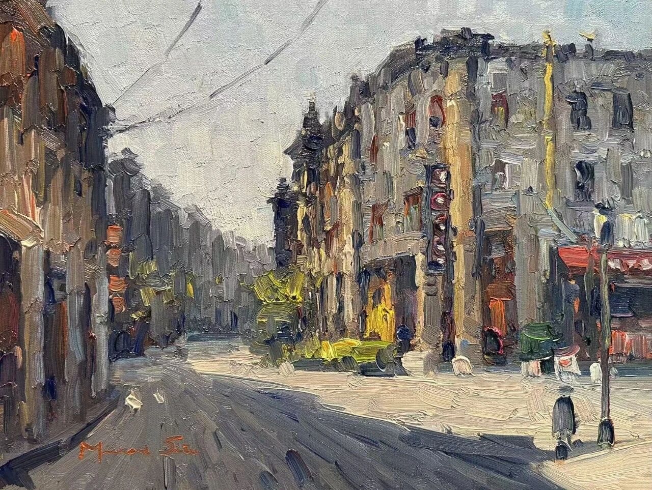 梁锐森《古街印象》油画 40cm×60cm 2025年
