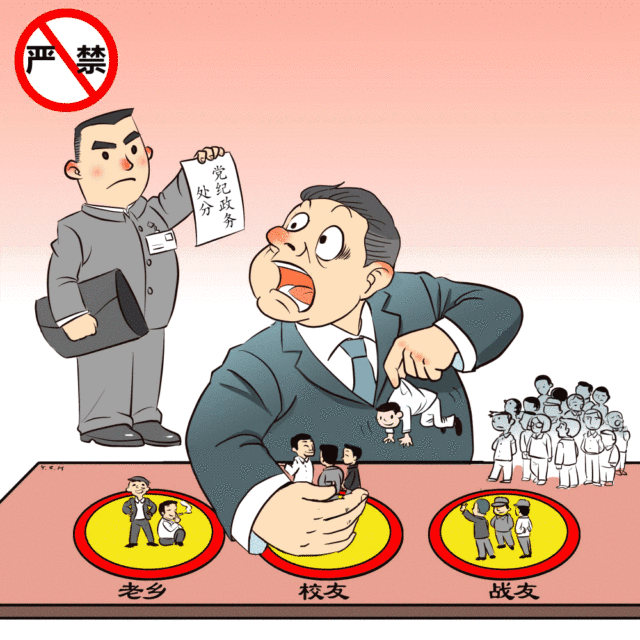 对拉帮结派、上下勾联、搞团团伙伙和小圈子的,以人划线、任人唯亲、排斥异己的,培植个人势力、结成利益集团的,一律给予党纪政务处分。