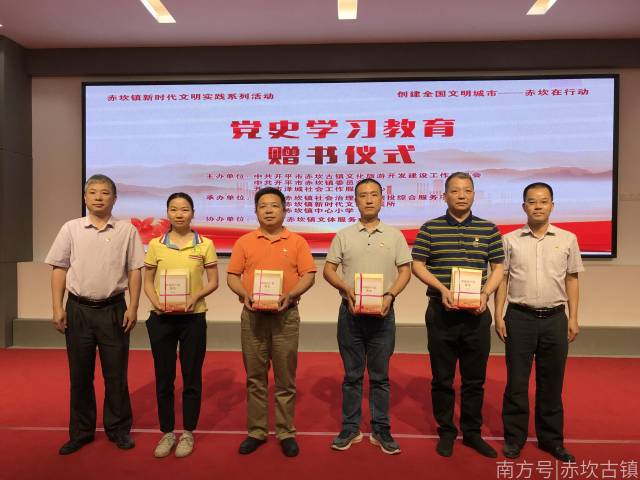 为提高学习党史的深度,在活动现场,赤坎镇人民政府向赤坎镇中心学校、赤坎镇中心小学、赤坎镇文体服务中心及赤坎镇社会治理公益创投综合服务项目赠送党史学习教育书籍。