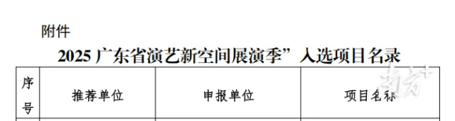 为配合全省开展“粤享暖冬 乐游广东”消费季活动,更好满足人民群众多样化、高品质的文化需求,推动广东演艺市场高质量发展,广东省文化和旅游厅于2025年12月中旬至2026年3月中旬开展 “2025广东省演艺新空间展演季”活动。经单位申报、组织推荐、集体评议,综合考量申报项目的市场定位、演出规模、内容形式、艺术水准、演艺创新程度以及与项目周边住宿餐饮、休闲运动、商贸文创等融合程度和消费拉动力度,共遴选出30个项目纳入此次活动。