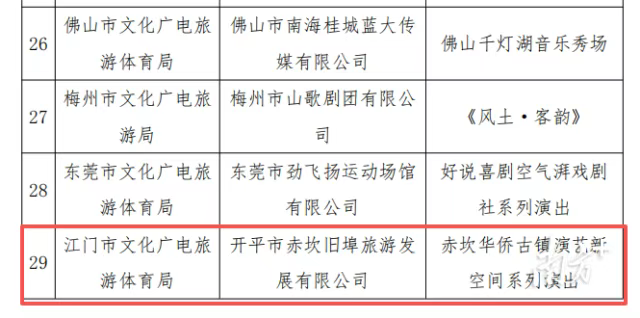 近日,广东省文化和旅游厅公布“2025广东省演艺新空间展演季”入选项目名录,开平市文化广电旅游体育局推荐的“赤坎华侨古镇演艺新空间系列演出”成功入选。