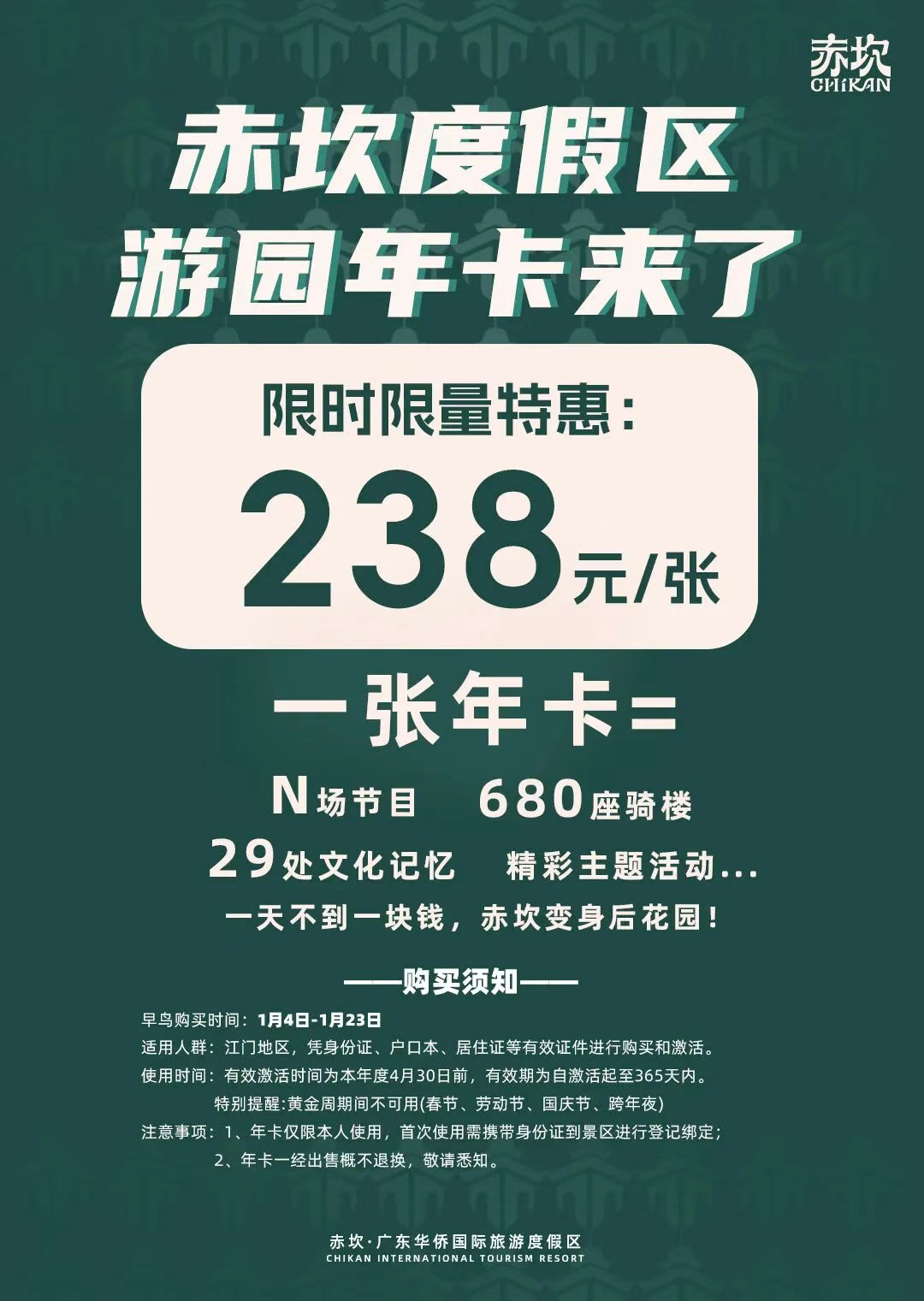 关于赤坎华侨古镇景区新一年的年卡,