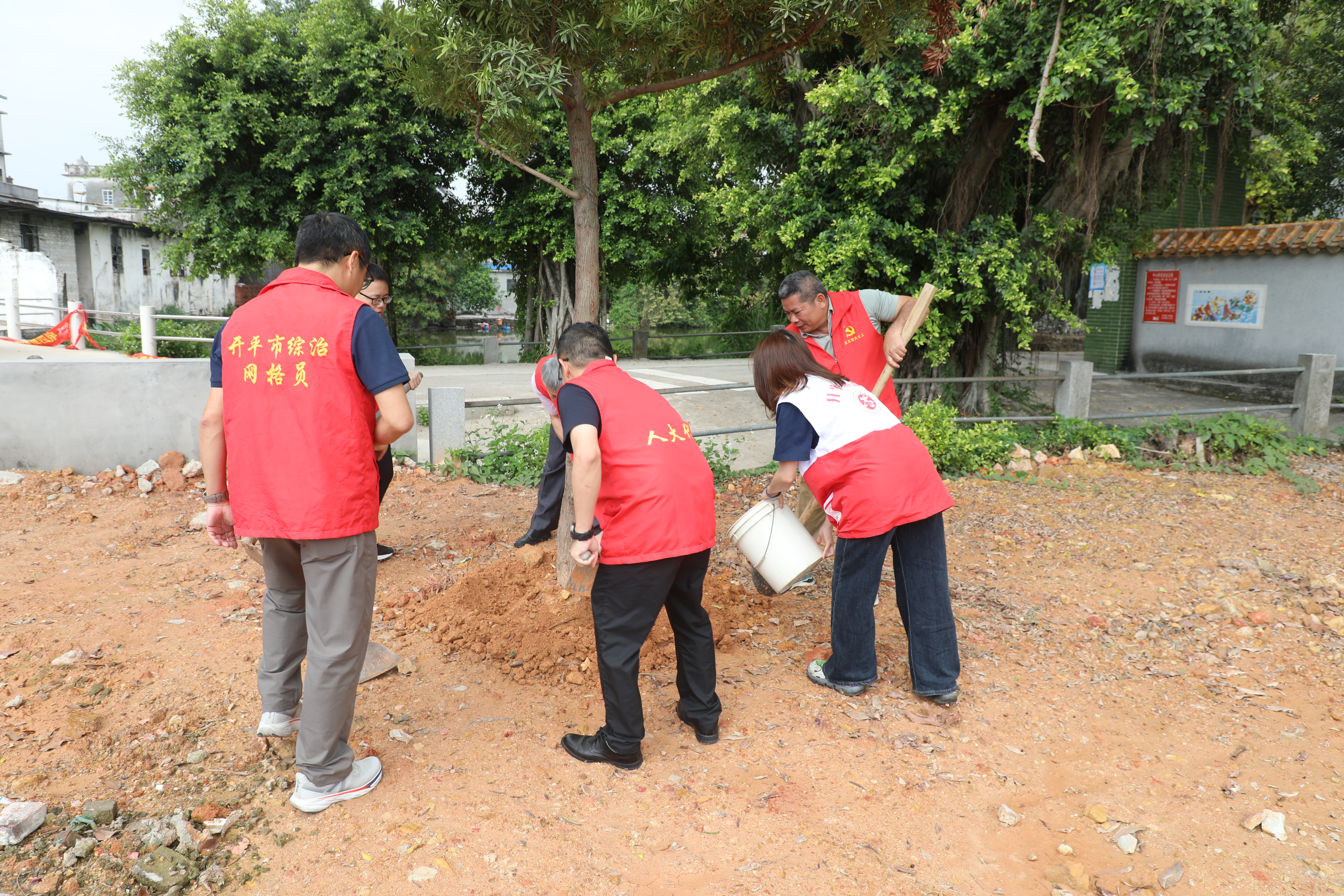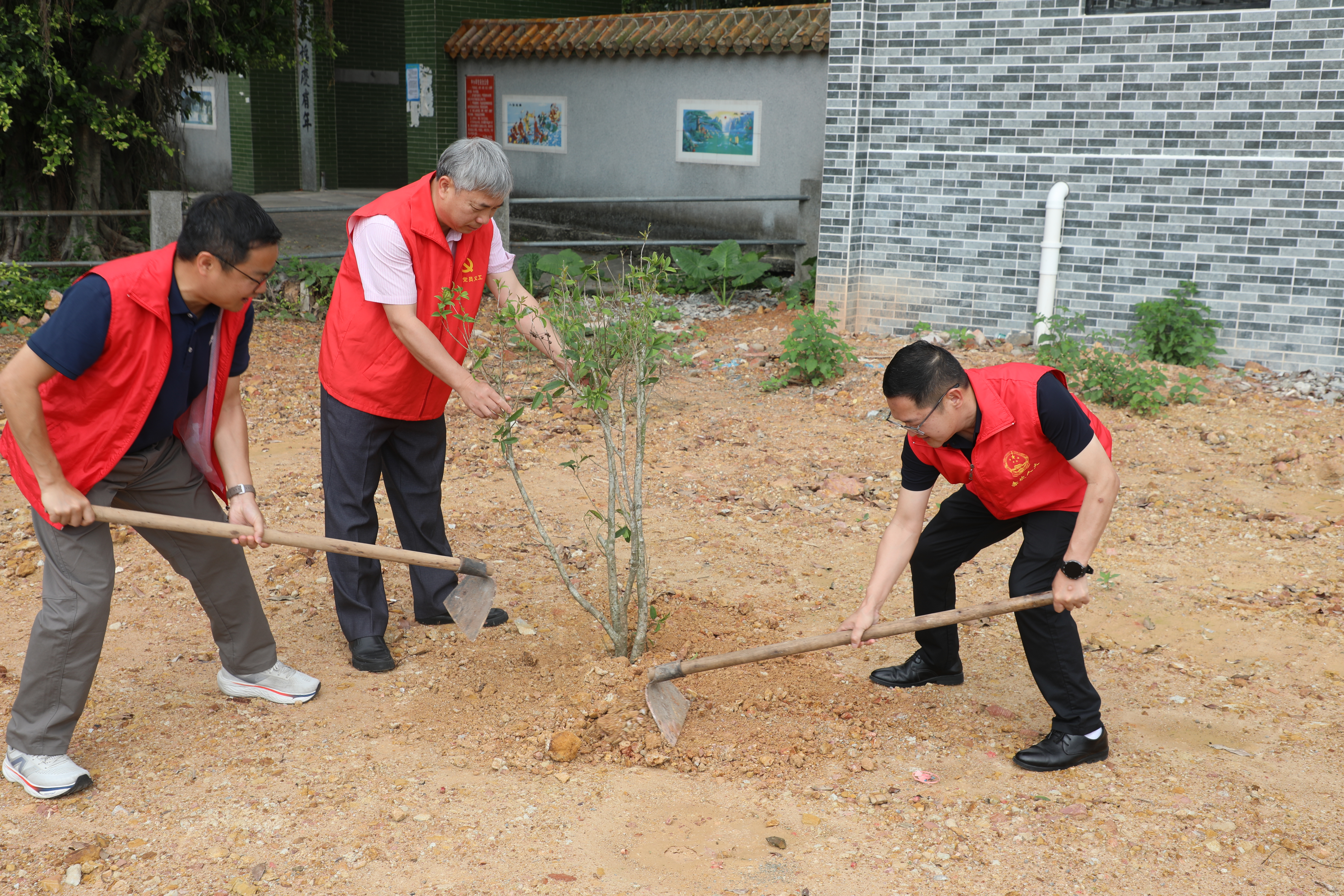 随后,参与人员迅速投入植树活动。代表们热情高涨、合作有序,认真细致地做好扶苗、填土、浇水等各个环节。经过代表们的辛勤付出,40余棵树苗在赤坎的土地上“安家落户”,一株株新栽的树苗迎风挺立,在春日阳光下焕发动人生机,为赤坎的乡村添上一抹新绿。