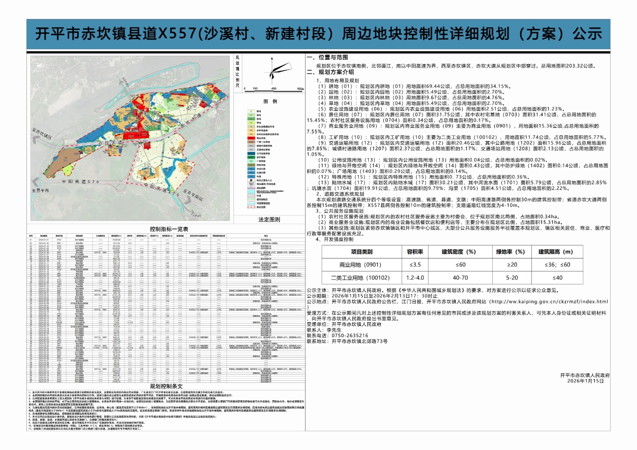 《开平市赤坎镇县道X557(沙溪村、新建村段)周边地块控制性详细规划》已完成初步规划方案的编制,按程序现对该初步规划方案进行公示(详情可登录网站:http://www.kaiping.gov.cn/ckzrmzf/xxgk/tzgg/index.html)。