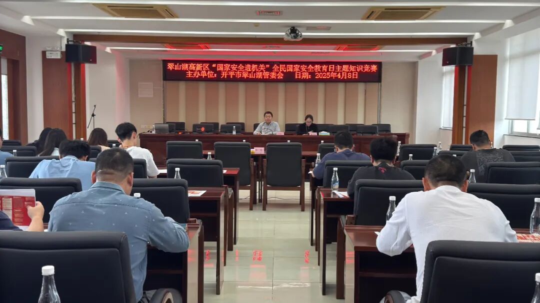为推动国家安全教育工作广泛深入普及,增强全民国家安全意识,切实提高广大党员干部职工的参与度,在第十个全民国家安全教育日即将来临之际,4月8日下午,翠山湖高新区举办2025年“国家安全进机关”全民国家安全教育日主题知识竞赛,以内容丰富、形式多样、生动活泼的方式深化普法成果。翠山湖党工委委员胡普伦,翠山湖管委会、翠山湖集团公司干部职工共60多人参加活动。