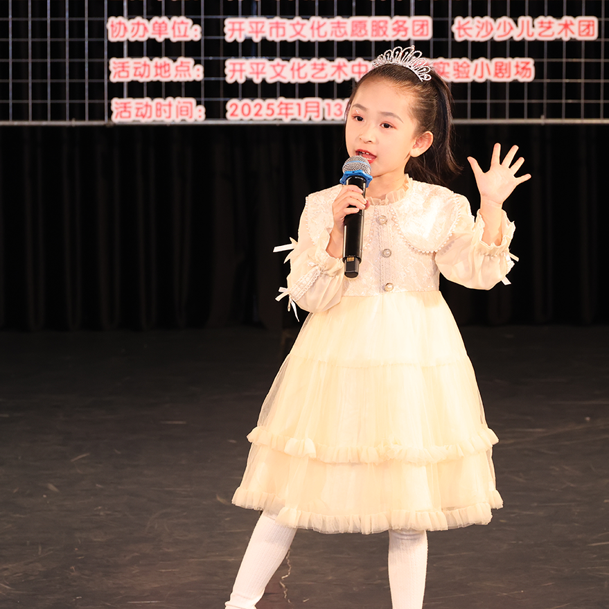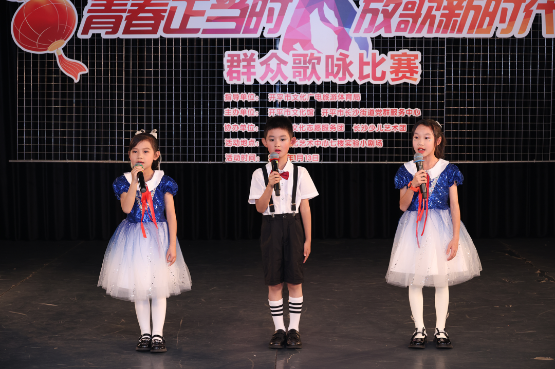 为引导艺术团学生树立正确的审美观念,陶冶健康的生活情趣,培养良好的艺术修养,汇报一年以来的学习成果,1月13日晚上,长沙少儿艺术团组织策划的“青春正当时 放歌新时代”群众歌咏比赛在开平文化艺术中心七楼实验小剧场圆满举办。 艺术团成立于2020年5月,现有学员100余人,设有合唱团、粤曲班、开平民歌班。在开平市文化馆和长沙街道的大力支持下,艺术团积极开展培训和参加各项比赛、活动,均获得了优异的成绩。 活动中,一首曲调欢快的开平民歌《美丽家园齐呵护》拉开帷幕,从稚气可爱的孩童,到青春洋溢的少年,从充满童趣的儿歌《羊娃娃》、《月亮粑粑》、《小小的梦想》,到欢乐动感的音乐《欢乐年年》、《党是太阳我是花》、《声声慢》,再到古典韵味的《采菊东篱下》、《戏曲中国》……丰富多彩的演唱,扣人心弦的表演,使现场观众赞叹不已。 此次歌咏比赛的成功举办,不仅展示了学生的艺术才华,也增强了学生的团队合作精神和自信心,更是对艺术团这一年努力付出的总结、反馈,进一步激发了大家对音乐的热爱和对美好生活的追求。希望大家在艺术的道路上不断前行,追逐属于自己的光!