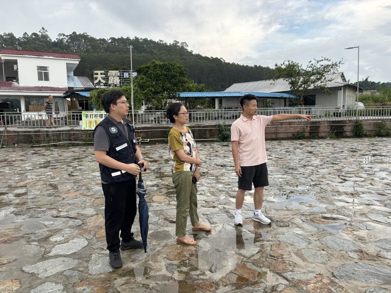 二是排查严、隐患清。9月7日,开平市政协副主席黄婉慈直奔大沙镇关键风险点,先后深入鱼鳞坝工地、西湾村地质灾害点、圩镇在建工地开展安全隐患排查;镇应急办同步聚焦高风险区域,对横水村、群乐村等地质灾害高风险点,榄坑、急水田等野游点及在建工地逐一核查,并提前完成山洪灾害高危区19名群众的转移劝诫,从源头阻断风险;各村也迅速行动,对村内危房、无人居住楼房开展全覆盖、无死角排查,在房屋周边醒目位置拉设红白相间的警示警戒线,形成闭环防护区域。