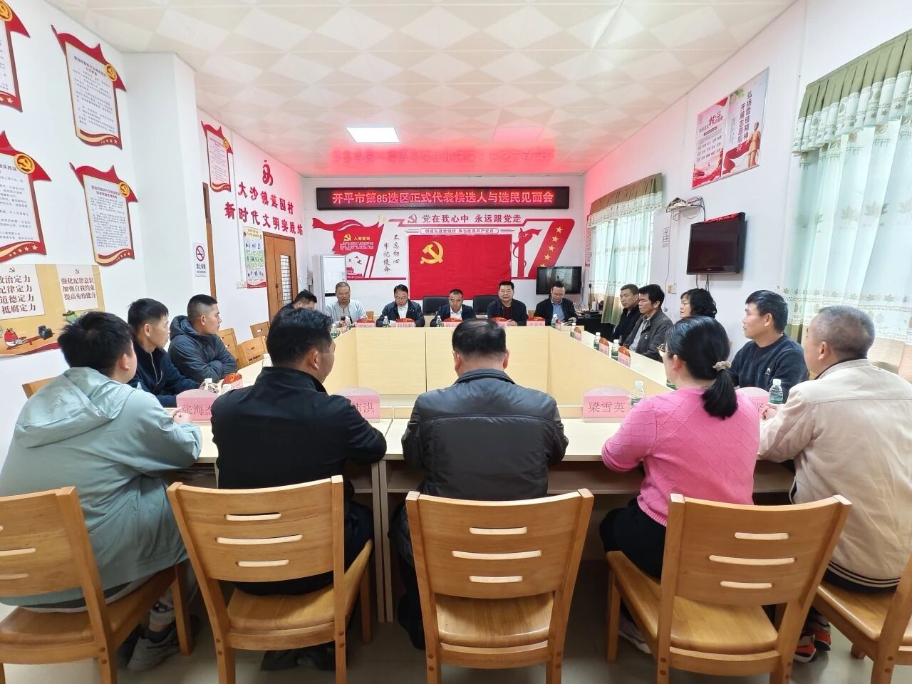为让选民进一步了解人大代表正式候选人有关情况,确保补选市第十七届人民代表大会代表选举顺利进行,12月16日上午,开平市大沙镇(开平市第85选区)召开正式代表候选人与选民代表见面活动,通过现场“面试”的方式,搭建人大代表正式候选人与选民见面沟通的平台,促进双方近距离、面对面交流,使选民们对候选人有更全面的了解,“见榜更见人”,为进一步激发选民参与民主选举的政治热情,更好地行使选举权利,投下神圣的一票奠定坚实基础。开平市委常委、组织部部长戴志滔以正式代表候选人身份参加见面会,市人大常委会党组成员、副主任刘威龙,大沙镇党委书记伍伟鹏参加。