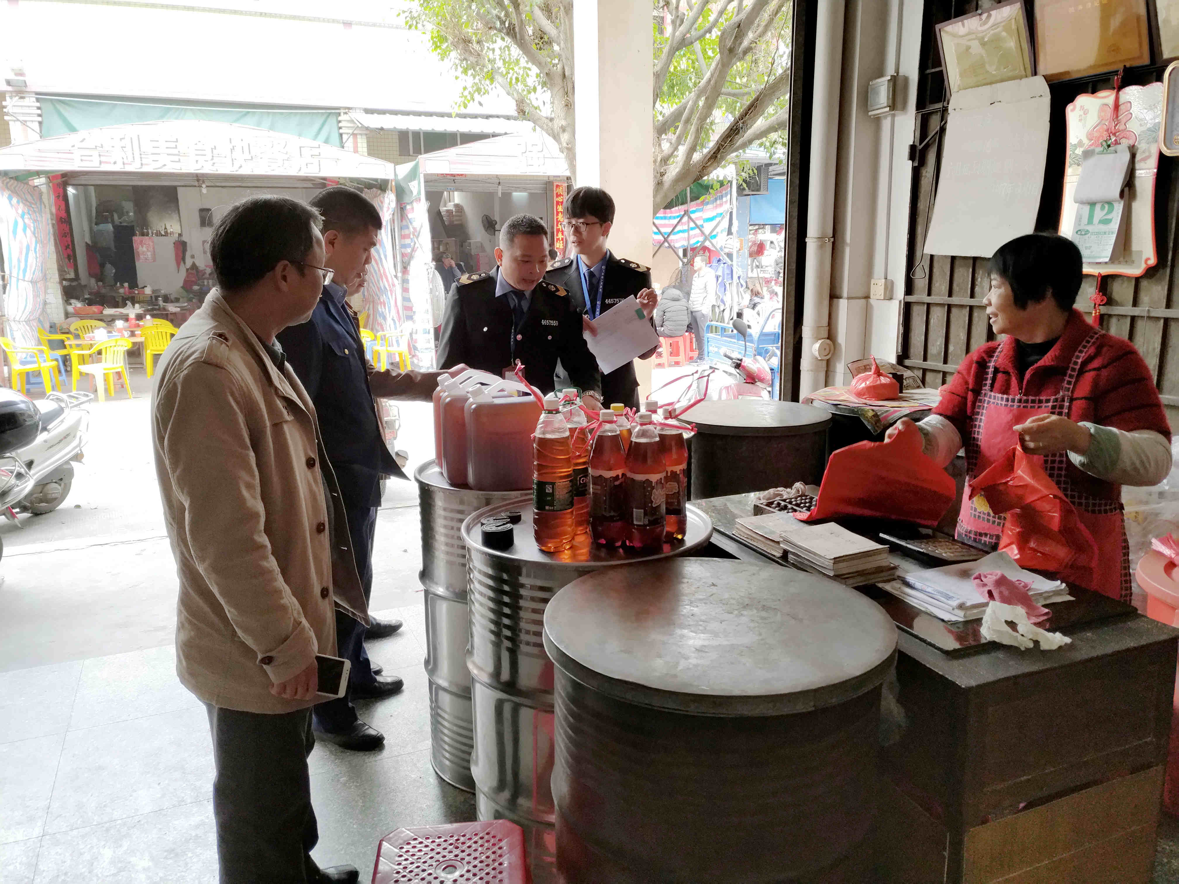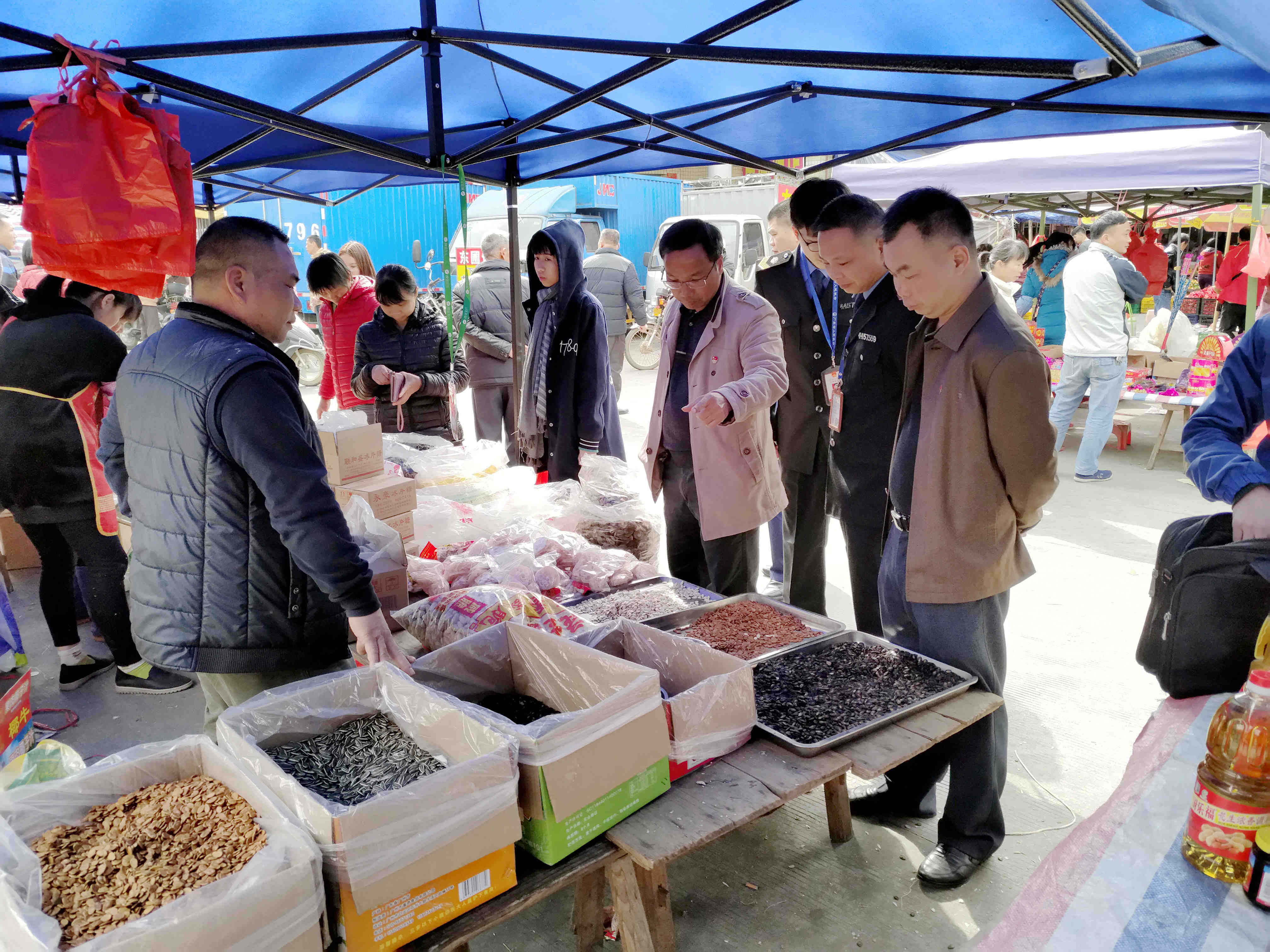 春节将至,家家户户购买年货过年,是食品安全风险集中,事故易发的敏感时段,为了防范食品安全事故的发生,大沙镇于2月12日上午,由大沙镇食安办牵头农业服务中心联合苍城食品药品监督管理所、龙胜工商所执法队对大沙镇超市、市场、小作坊、摊贩进行食品安全专项检查。