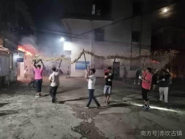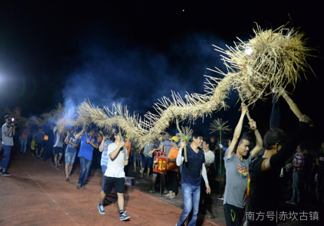 值得注意的是,龙头要村里德高望重的老人家来制作。傍晚时分,村民点燃香烛插在龙身上,随着锣鼓敲响就开始“舞火龙”。全村巡游庆贺之后,就到村场走一圈。最后,所有“火龙”聚集在村委会门前村场,与舞狮队伍共同起舞,表演“火龙转圈圈”,以此象征护龙邓族源远流长,族人同心同德,团结一致。