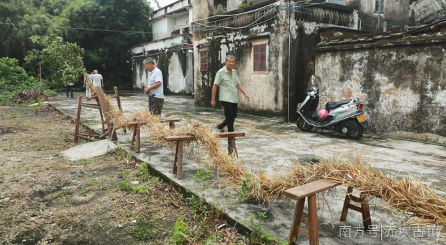 1、做大草绳。运用一根树枝和大概100斤的稻草,通过不断地扭向同一方向,制作长约25米的大草绳。一共制作3条。
