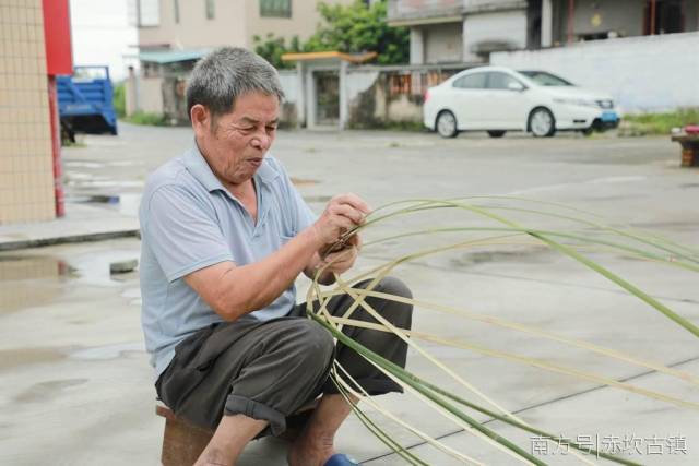 (2)削好了竹条,把预先做好的直径约20厘米的竹篾圈,每隔60厘米一个固定在6条削好的竹条上,用麻丝捆扎固定。竹条长度不够,便需要另外的竹条接驳,直至长度达到标准。