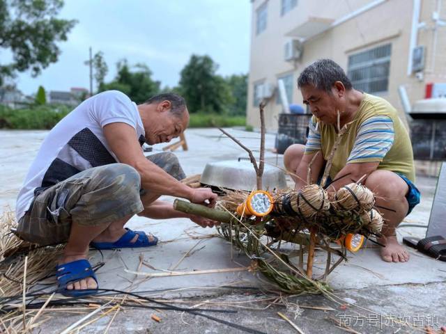 3、装龙眼。拿两个手电筒,用铁线捆扎在两边龙角的前方,待晚上舞龙时再打开灯,光线随着龙的摆动,显得栩栩如生。在过去经济不太好的时候,村民买不起手电筒,就用瓶子装满萤火虫来发光。