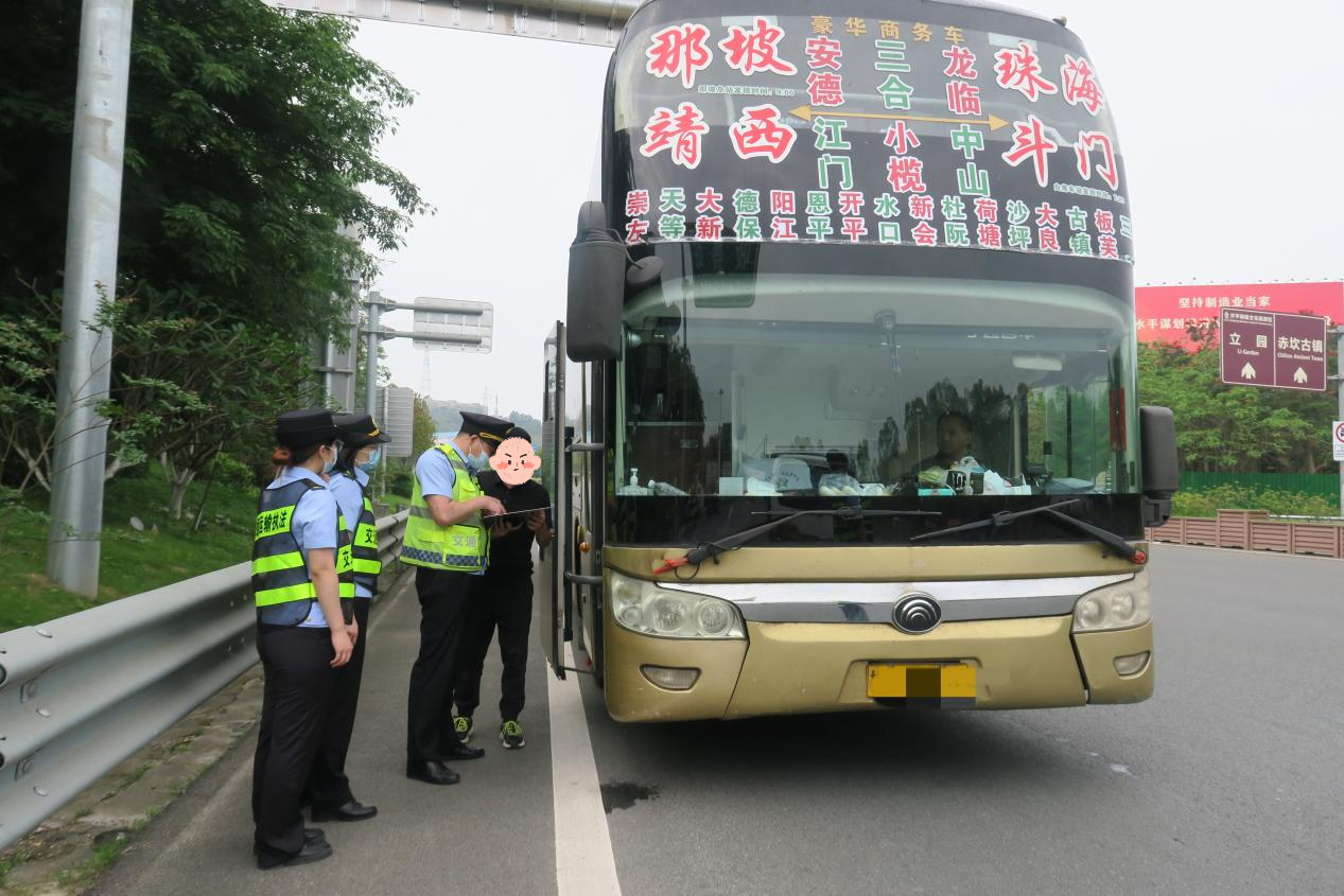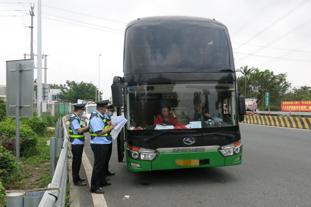 5月3日,交通执法人员在翠山湖高速口路段进行重点布控展开检查,查处一辆外籍车牌桂L807**大型客车。经调查,发现广西****运输有限责任公司**汽车总站桂L807**大型客车涉嫌客运班车不按规定的线路行驶及不按批准的配客站点停靠,执法人员依法对其立案查处。