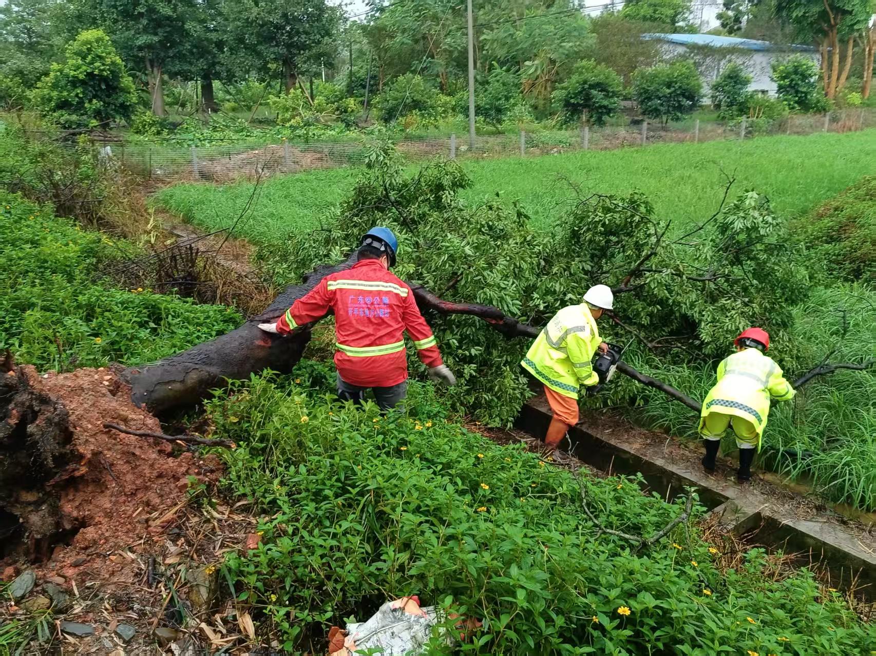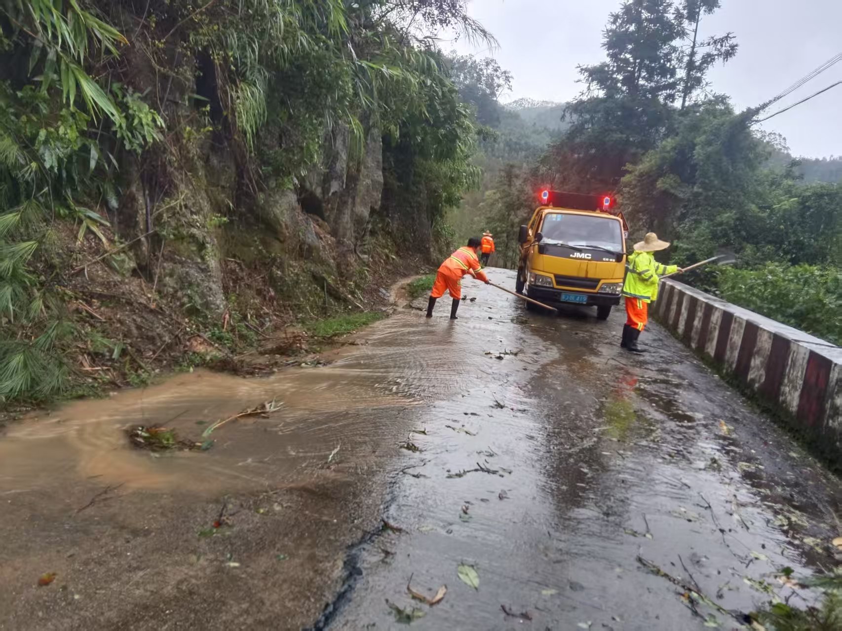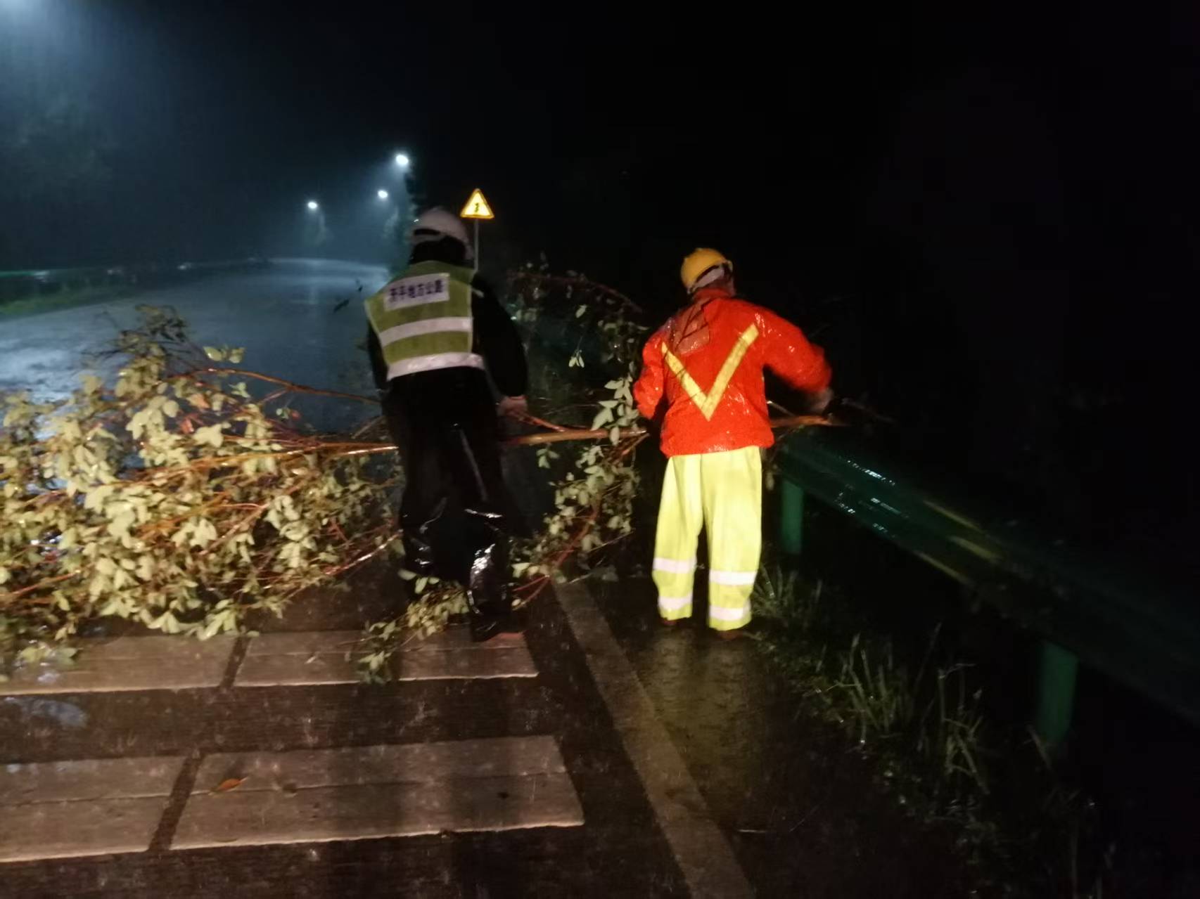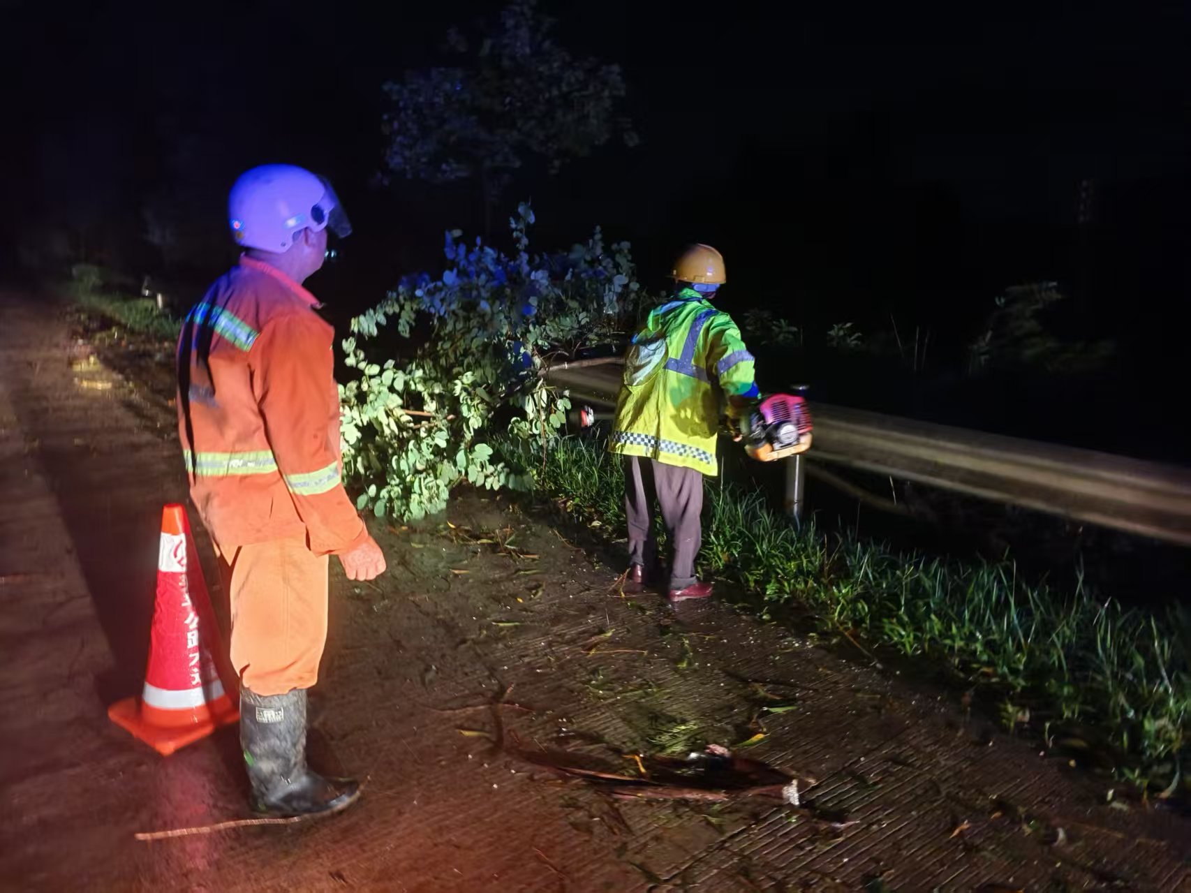 9月24日至9月25日,为排除险情并保障道路畅通,我局累计出动应急抢险队伍12支,抢险人员82人,动用大型挖掘机2台、小铲车6辆、电锯9台、油锯45台、平板卡车2辆、特种工作用车17辆,巡查路线30条,巡查公路283.782公里,处理倒伏树竹968棵,疏通桥涵泄水孔及排水沟2处。