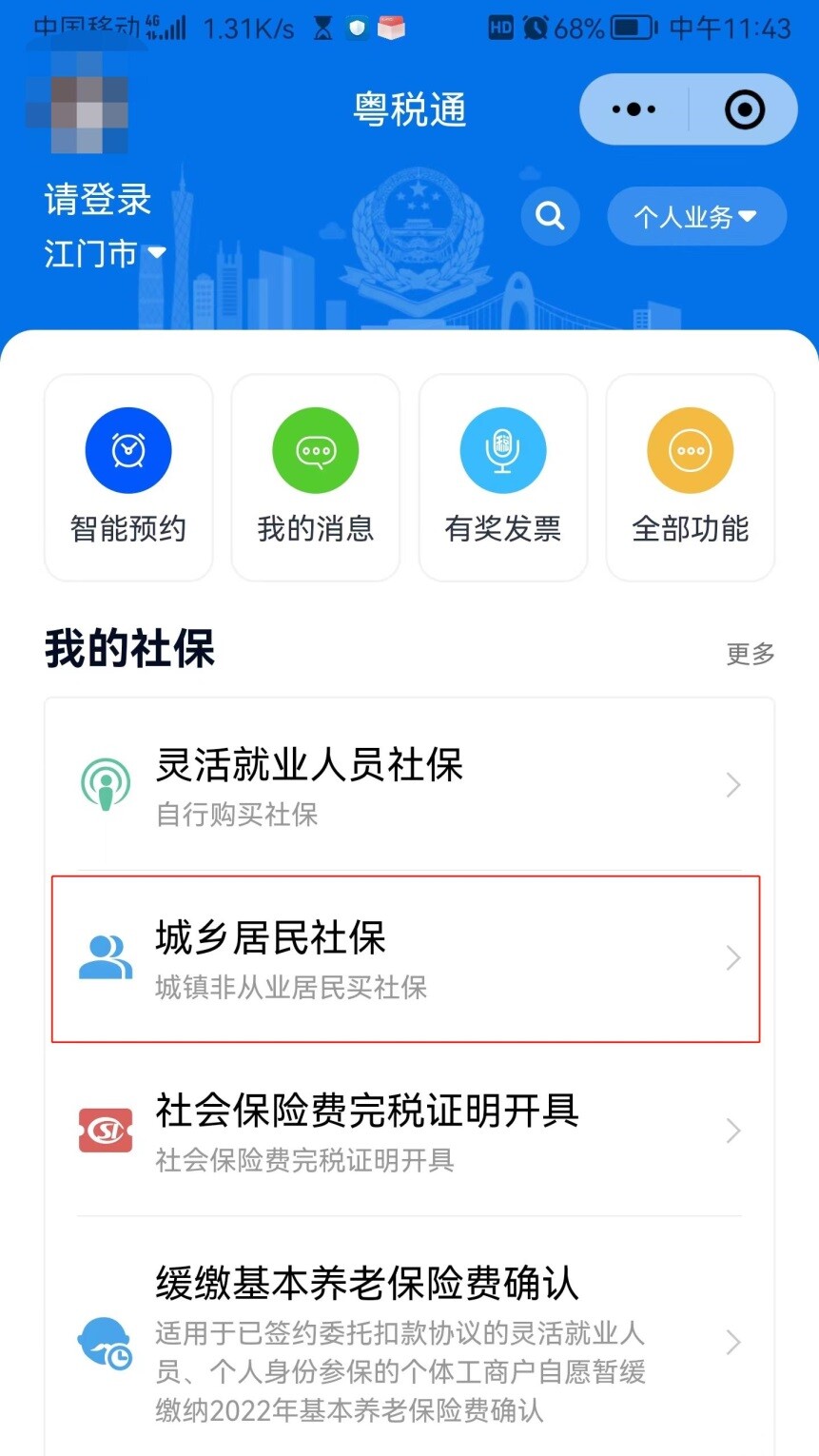 选择“城乡居民社保”