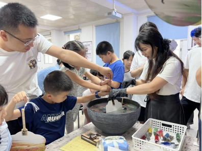 本次活动集知识性、趣味性、体验性为一体,共分为非遗漆扇制作体验与杯子蛋糕制作两部分。活动现场,每组家庭听取了漆扇老师关于漆扇的历史发展和制作工艺介绍,均被漆扇独特的艺术魅力和深厚的文化底蕴深深吸引。通过亲手制作属于自己独一无二的漆扇,深深体验了中国非遗技艺的魅力。随后,每组家庭在烘焙老师的指导下,亲手制作杯子蛋糕,领略烘焙的无穷乐趣。每个孩子变身小小魔法师,用奶油、水果、饼干等对蛋糕胚进行“化妆”,现场一片欢声笑语。