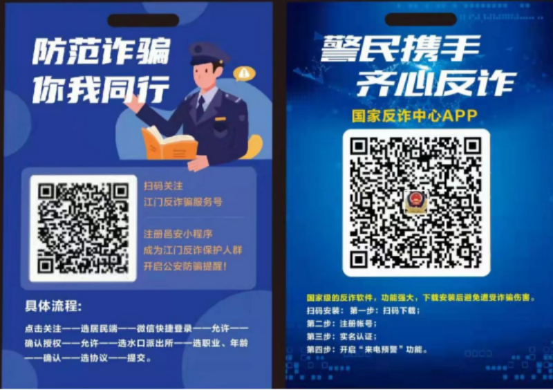 国家反诈中心APP和“邑安”小程序能有效预防电信诈骗、快速举报诈骗内容,守护广大群众的财产安全,在此号召广大市民群众,安装注册国家反诈中心app和关注“邑安”小程序,不给犯罪分子可乘之机!