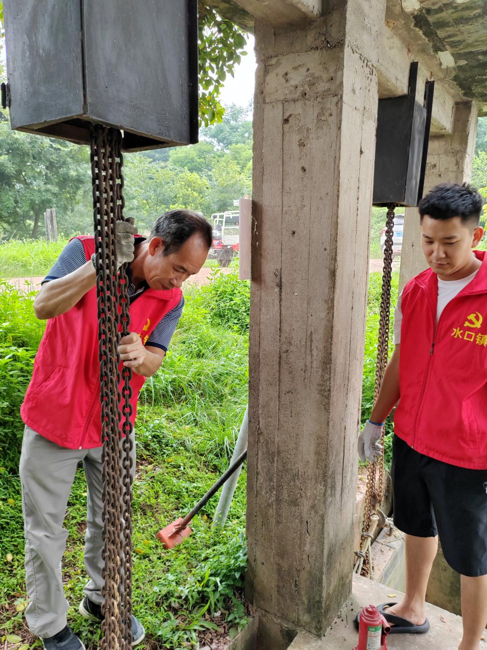台风来临前,在永乐村委会,网格员邝奇发、邝炎棋顶着烈日酷暑实地检查潭江村水闸启闭机工作情况,确保水闸正常运行。“我们密切关注着台风动态,严格执行应急预案,加强对水闸、堤围的巡视,维护保养设备,全力以赴做好防汛防台工作。”