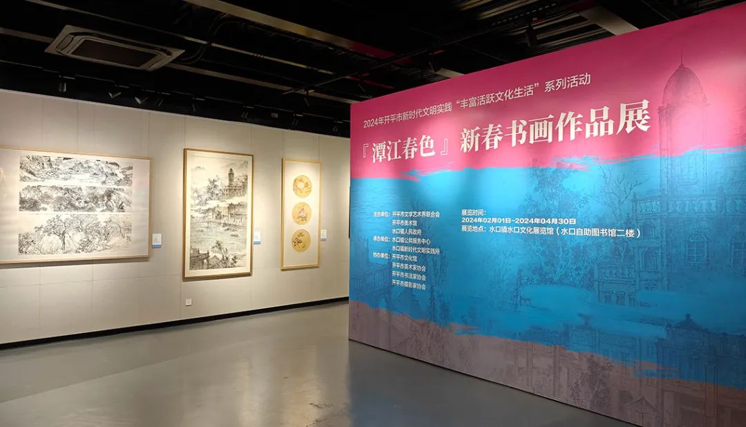 在新春佳节来临之际,为大力弘扬中华优秀传统文化,丰富辖区居民群众文化生活,营造欢乐喜庆、和谐祥和的节日氛围,2月1日,由开平市文学艺术界联合会、开平市美术馆、水口镇人民政府主办,水口镇公共服务中心、水口镇新时代文明实践所承办,开平市文化馆、开平市美术家协会、开平市书法家协会、开平市摄影家协会协办的《“潭江春色”新春书画作品展》在水口展览馆隆重开展。