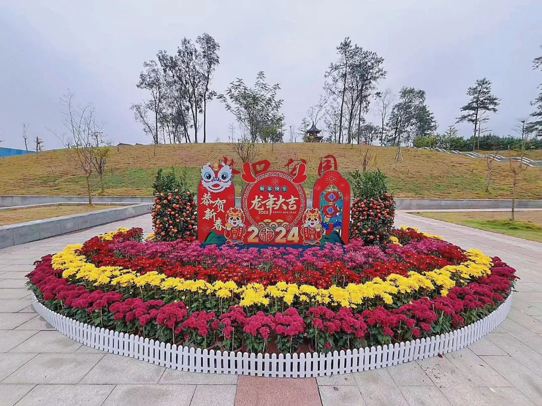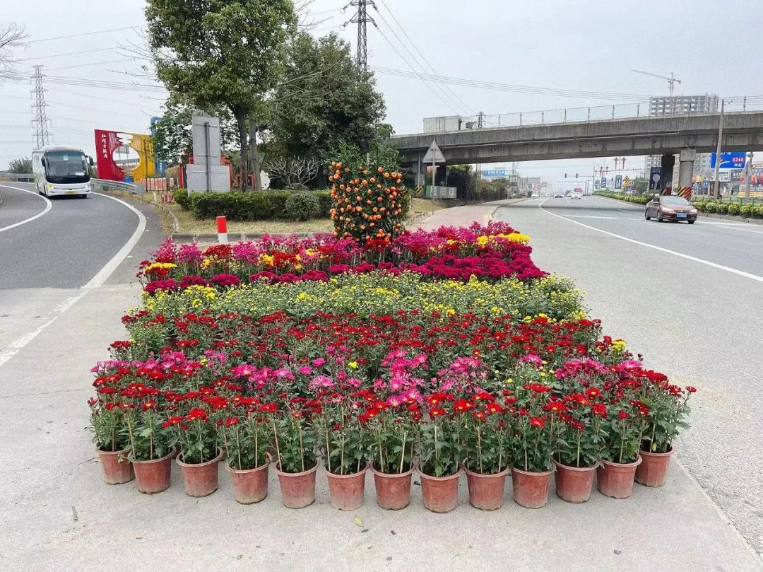在高速出入口、水口公园等重要节点处,布置了各式各样的时令花卉和新春元素装饰,邀请市民游客共赴美景。