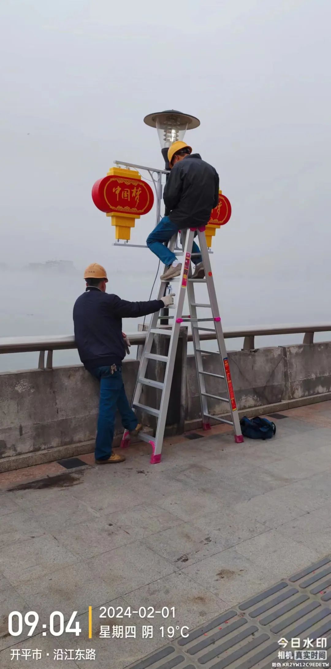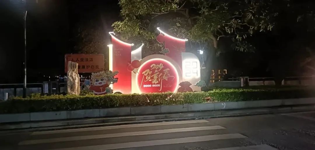 春节悬挂灯笼是中国的传统习俗,红灯笼寓意着红红火火、团圆美满。水口镇在滨江路更换“中国梦”灯饰,采用传统灯笼造型,还设置了“2024贺新春”龙年卡通元素灯饰,将河堤夜景衬托得红红火火,处处洋溢着新年的欢乐气氛。