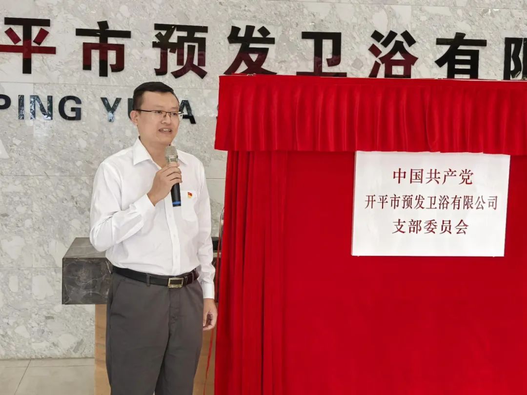 揭牌仪式上,开平市预发卫浴有限公司董事长钱昌宝回顾了公司发展过程,感谢了开平市和水口镇为企业打造了一流营商环境,并表示接下来将依托自身党建阵地资源,抓好党支部规范化建设,切实将党建优势转化成为企业的竞争优势,为水口镇“百千万工程”工作开展贡献力量。