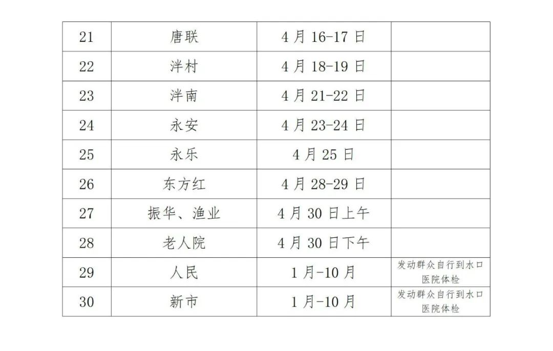 如因天气或其他事宜需要更改体检时间,公卫科提前联系村委。