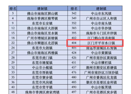 开平市水口镇上榜