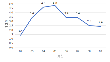 图一 2024年2月以来开平市规模以上工业增加值增速