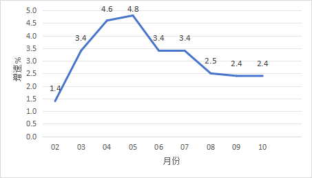 1-10月,全市完成固定资产投资同比增长1.6%。分经济类型看,国有投资下降27.1%,民间投资下降2.4%。分产业看,第一产业投资下降62.3%;第二产业投资增长4.3%,其中工业投资增长4.3%;第三产业投资增长1.4%,其中房地产投资下降13.4%。