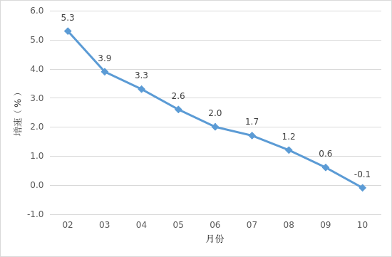 1-10月,我市完成社会消费品零售总额157.12亿元,同比下降0.1%。