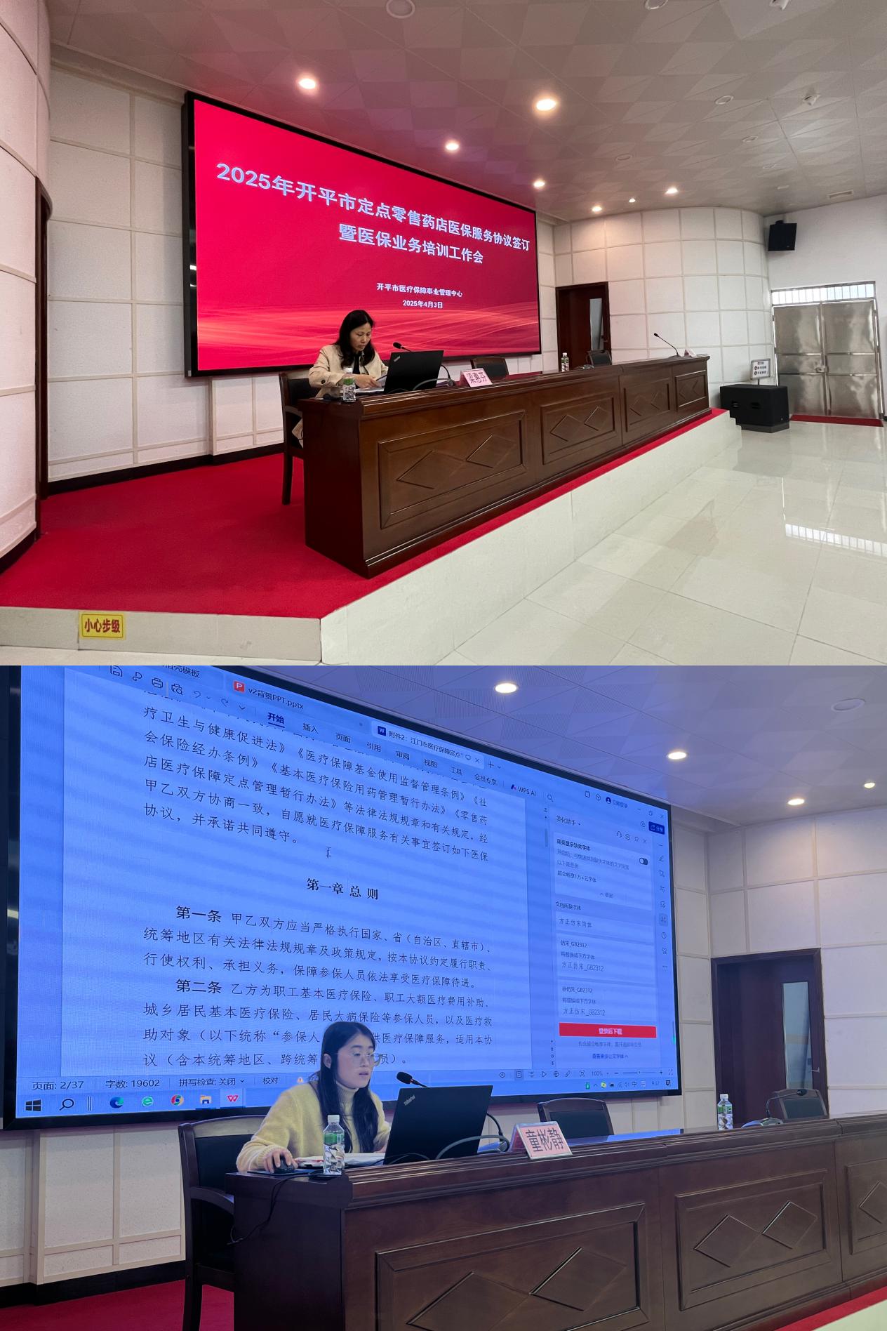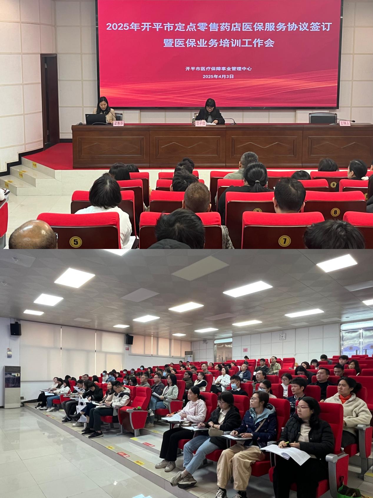 为做好2025年开平市医疗保障定点零售药店服务协议签订工作,开平市医保中心于4月3日组织召开2025年定点零售药店服务协议签订暨医保业务培训工作会。市医保局分管领导、市医保中心负责人、医保局和医保中心骨干及定点零售药店法人或企业负责人参会。