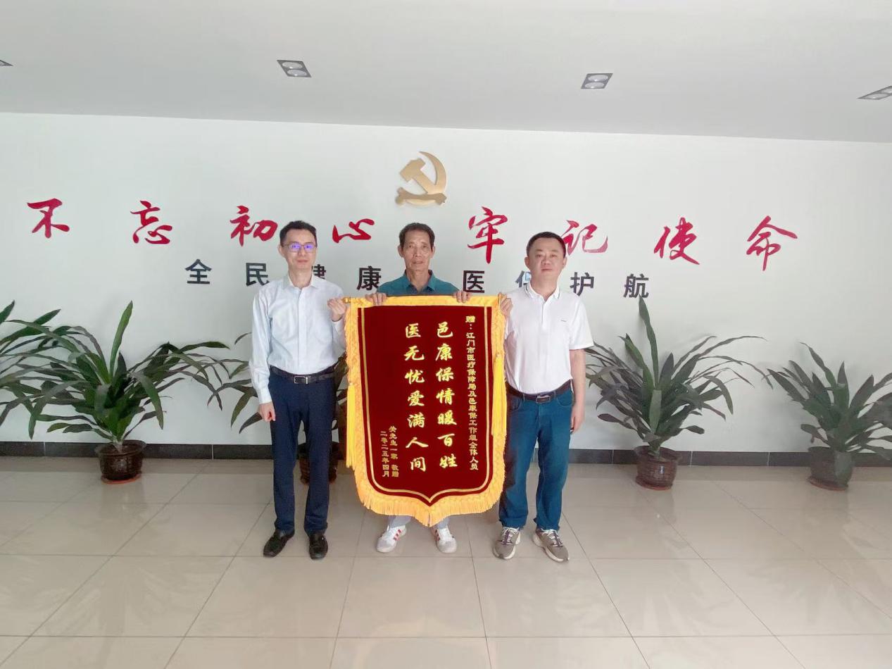 2025年4月21日,开平市民关贞玉家属将一面写有“邑康保情暖百姓,医无忧爱满人间”的锦旗送到了开平市医疗保障局,对政府主导江门定制的邑康保理赔服务表示了满满的感谢!开平市医疗保障局局长颜冠、邑康保承保公司经理陈哲出席了此次简单而庄重的锦旗赠送仪式。