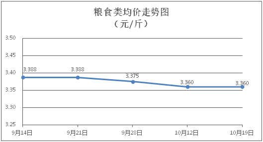 粮食类商品价格保持稳定。所监测的4种粮食类商品价格均持平,综合零售均价为每斤3.360元。其中:丝苗米、面粉零售均价分别为每斤3.51元、3.32元,环比均持平。