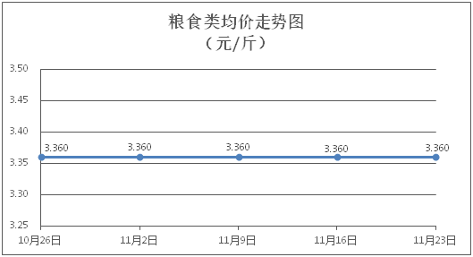 粮食类商品价格保持稳定。所监测的粮食类商品价格均持平,综合零售均价为每斤3.360元。其中:丝苗米、面粉零售均价分别为每斤3.51元、3.32元,环比均持平。