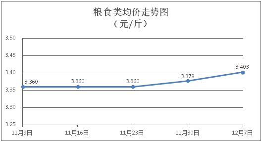 粮食类商品价格微幅上涨。所监测的4种粮食类商品价格均有所上涨,综合零售均价为每斤3.403元,环比上涨0.74%。其中:丝苗米、面粉零售均价分别为每斤3.54元、3.34元,环比分别上涨0.28%、上涨0.60%。