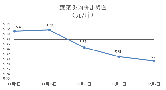 据本市21家农贸市场监测数据显示,上周(12月1日至12月7日)市场上各类“菜篮子”商品供应充足,所监测的7大类“菜篮子”商品价格环比总体表现为5涨2跌。其中:粮油类、水果类、水产类商品价格总体略涨,肉禽蛋类、蔬菜类商品价格窄幅盘整。
