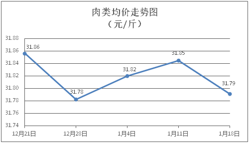 肉类商品价格微幅下降。所监测的8种肉类商品价格均下跌,综合零售均价为每斤31.79元,环比下降0.17%。其中:排骨、精瘦肉、牛肉、带骨羊肉零售均价分别为每斤29.28元、18.00元、46.79元、41.57元,环比分别下降0.34%、下降0.33%、下降0.02%、下降0.07%。