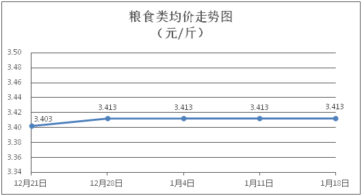 粮食类商品价格维持稳定。所监测的4种粮食类商品价格均持平,综合零售均价为每斤3.413元。其中:丝苗米、面粉零售均价分别为每斤3.54元、3.38元,环比均持平。