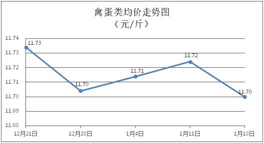 禽蛋类商品价格总体略降。所监测的禽蛋类商品价格波动情况为2涨3跌,综合零售均价为每斤11.70元,环比下降0.20%。其中:白条鸡、白条鸭零售均价分别为每斤20.90元、15.28元,环比分别上涨0.10%、下降0.07%;鸡蛋、咸鸭蛋零售均价分别为每斤6.35元、8.88元,环比分别上涨0.32%、下降0.56%。